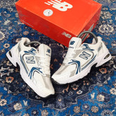 کتونی نیوبالانس ۵۳۰ سفید سرمه ای میانه (دوطرف کتونی بیرون و داخل N هک شده)